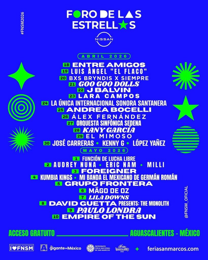 Este año, el Foro de las Estrellas recibirá a más de 20 artistas internacionales con acceso totalmente gratuito. Entre los más esperados están Andrea Bocelli, Goo Goo Dolls, David Guetta, J Balvin, Empire of the Sun y Grupo Frontera, ¡y muchos más!